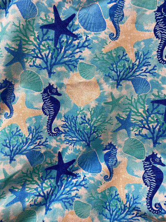Handmade Reversible Large Tote Bag with Seahorses & Seashells