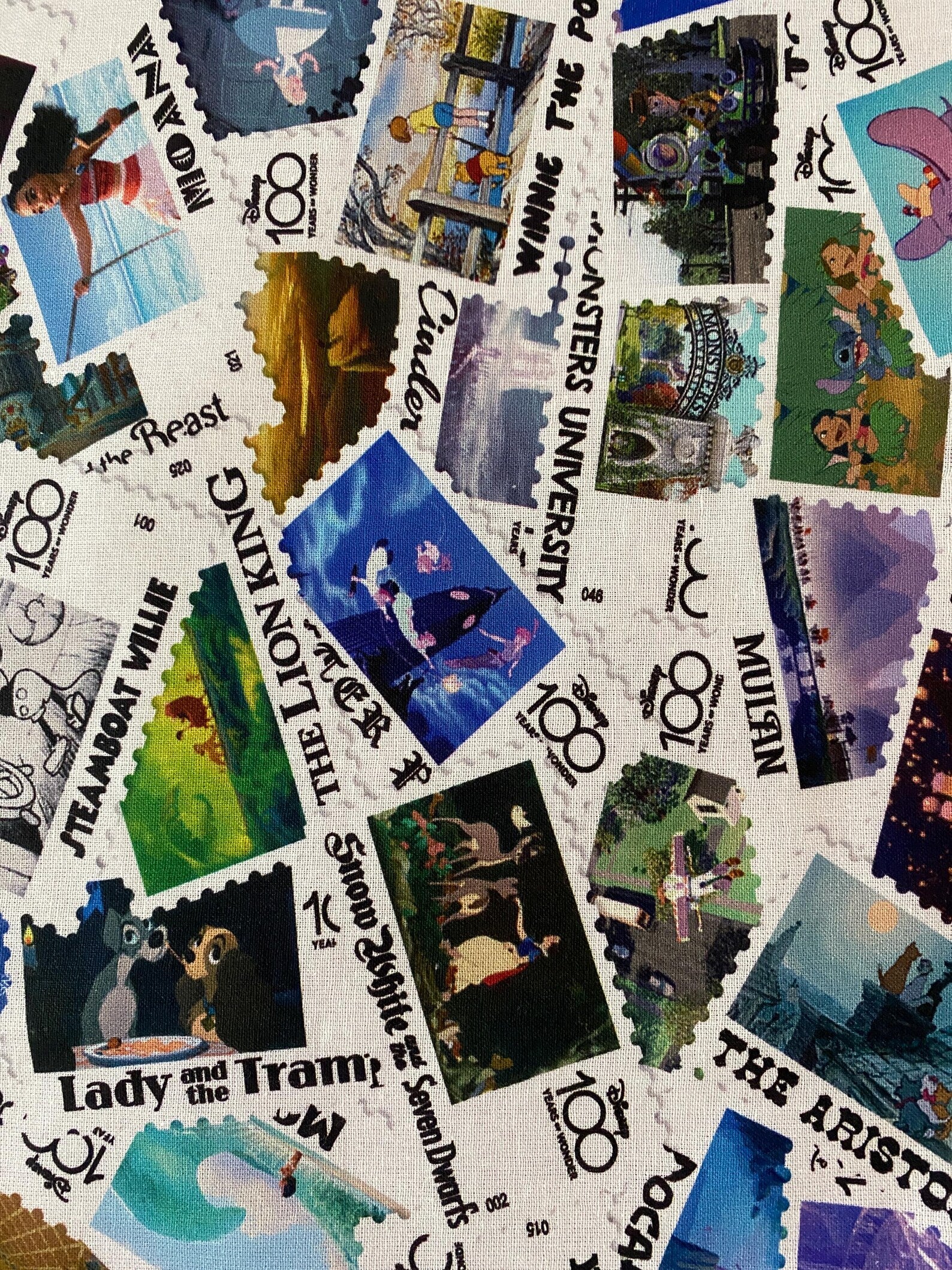Handmade Lined Child Disney Stamps Backpack With Draw Straps and Lavender Lining.