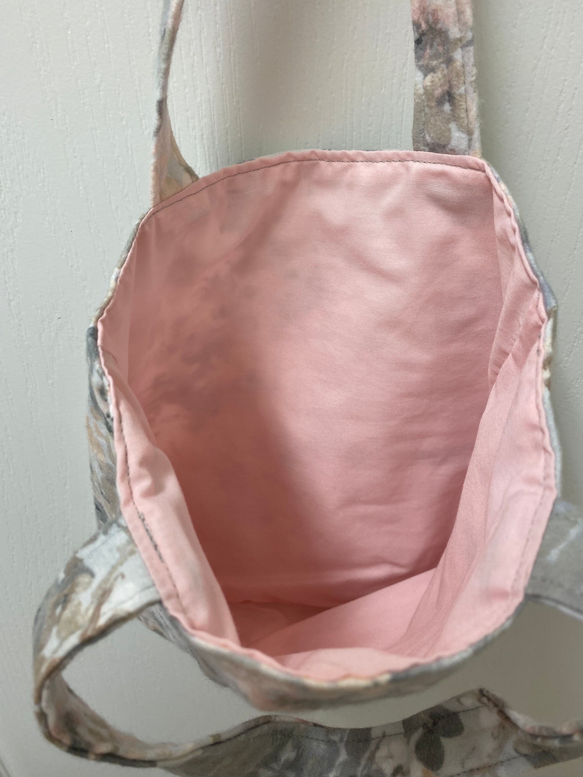 Handmade Flannel Lined Child Allover Floral Reversible Tote Bag Pink Lining