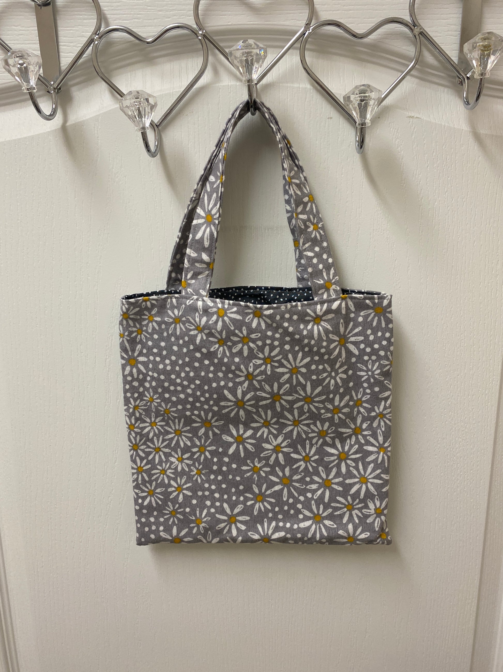 Handmade Flannel Lined Child Daisies Reversible Tote Bag Polka Dot Lining