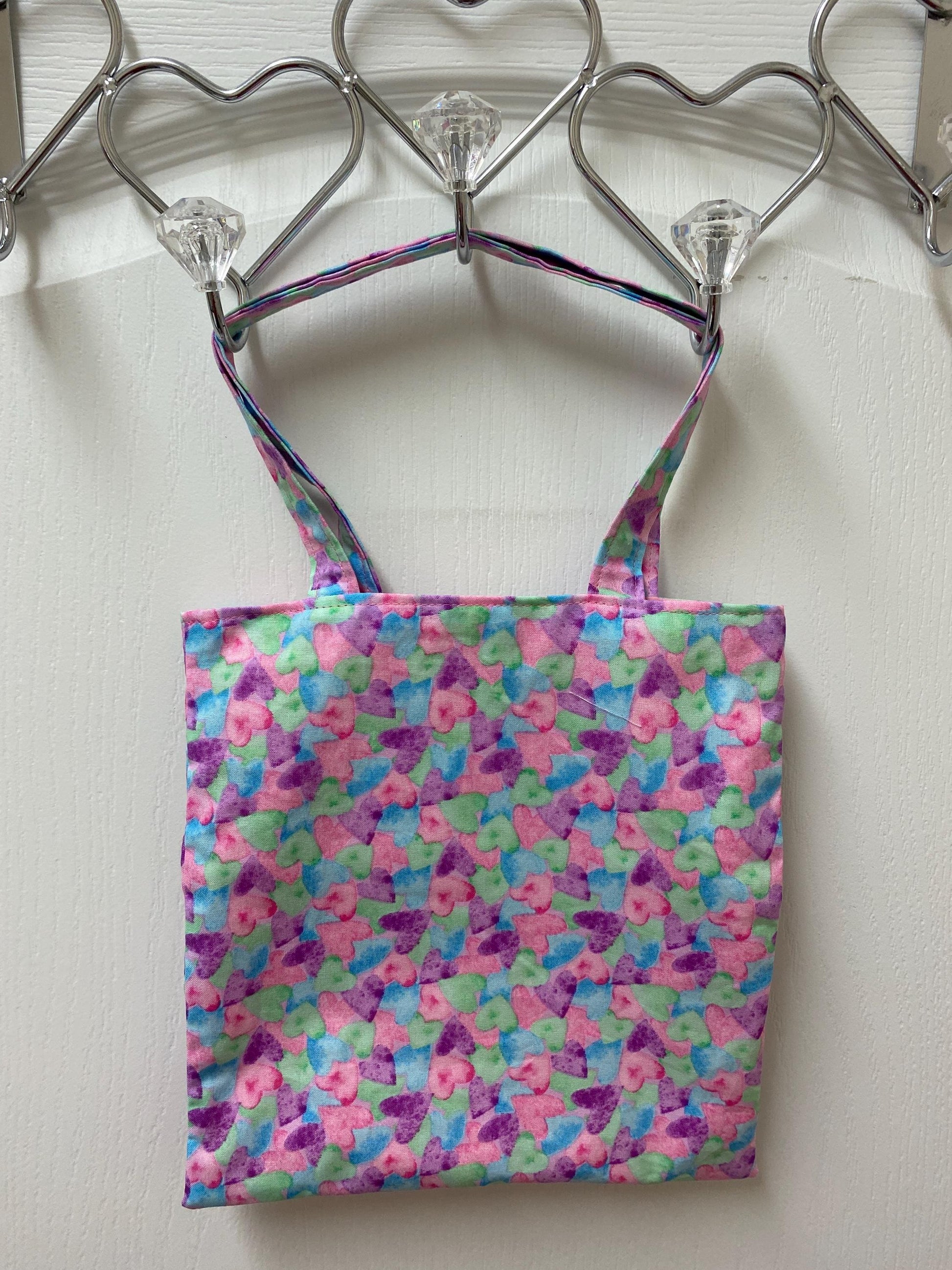 Handmade Lined Child Colorful Hearts Reversible Tote Bag
