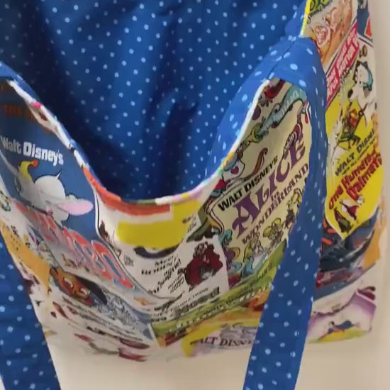 This handmade reversible large tote bag with Disney Movies Collection with a Blue Polka Dot lining and are perfect to carry around all your favorite things!