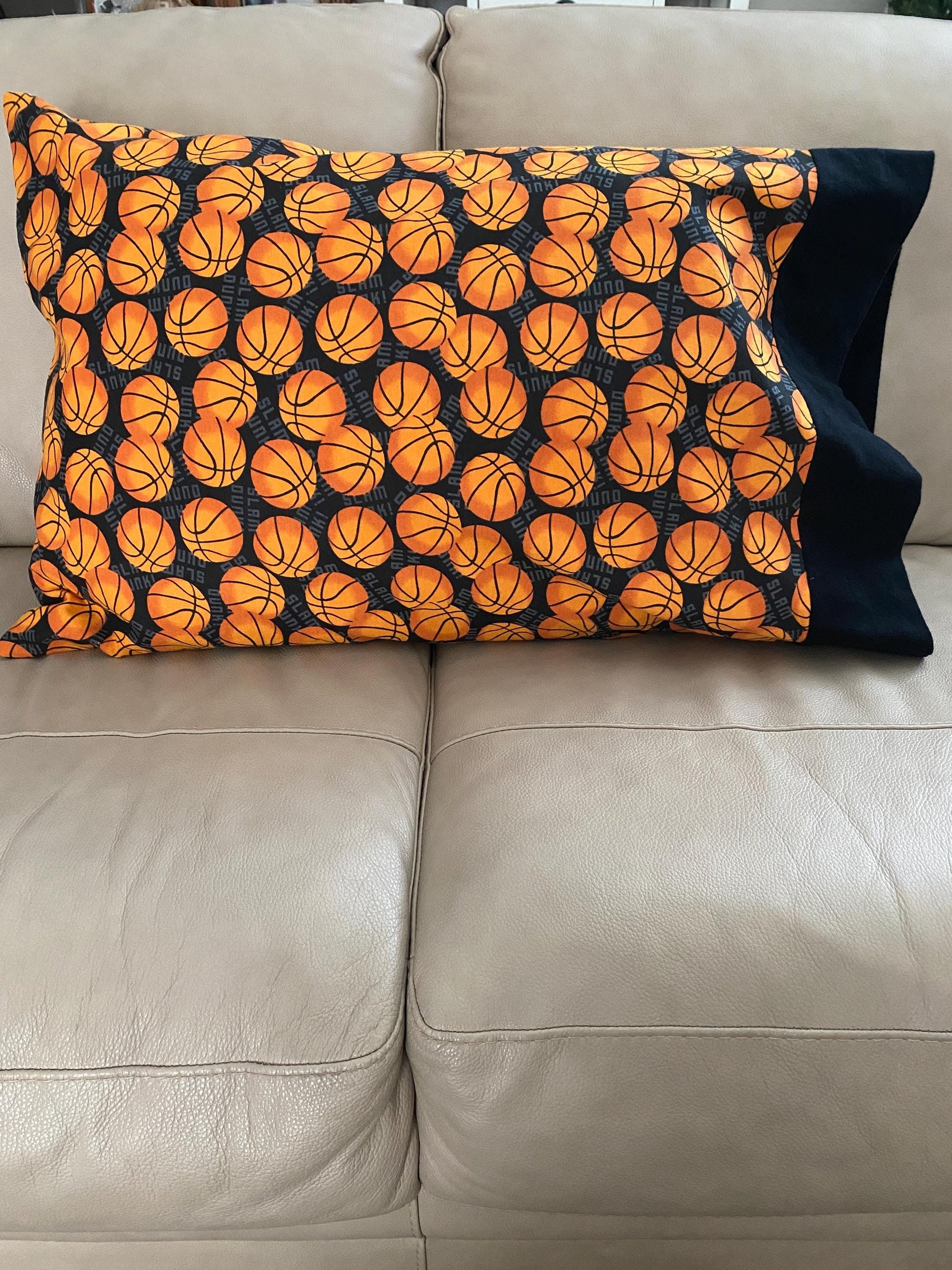 Handmade Standard/Queen Size Flannel Pillowcase Basketballs.